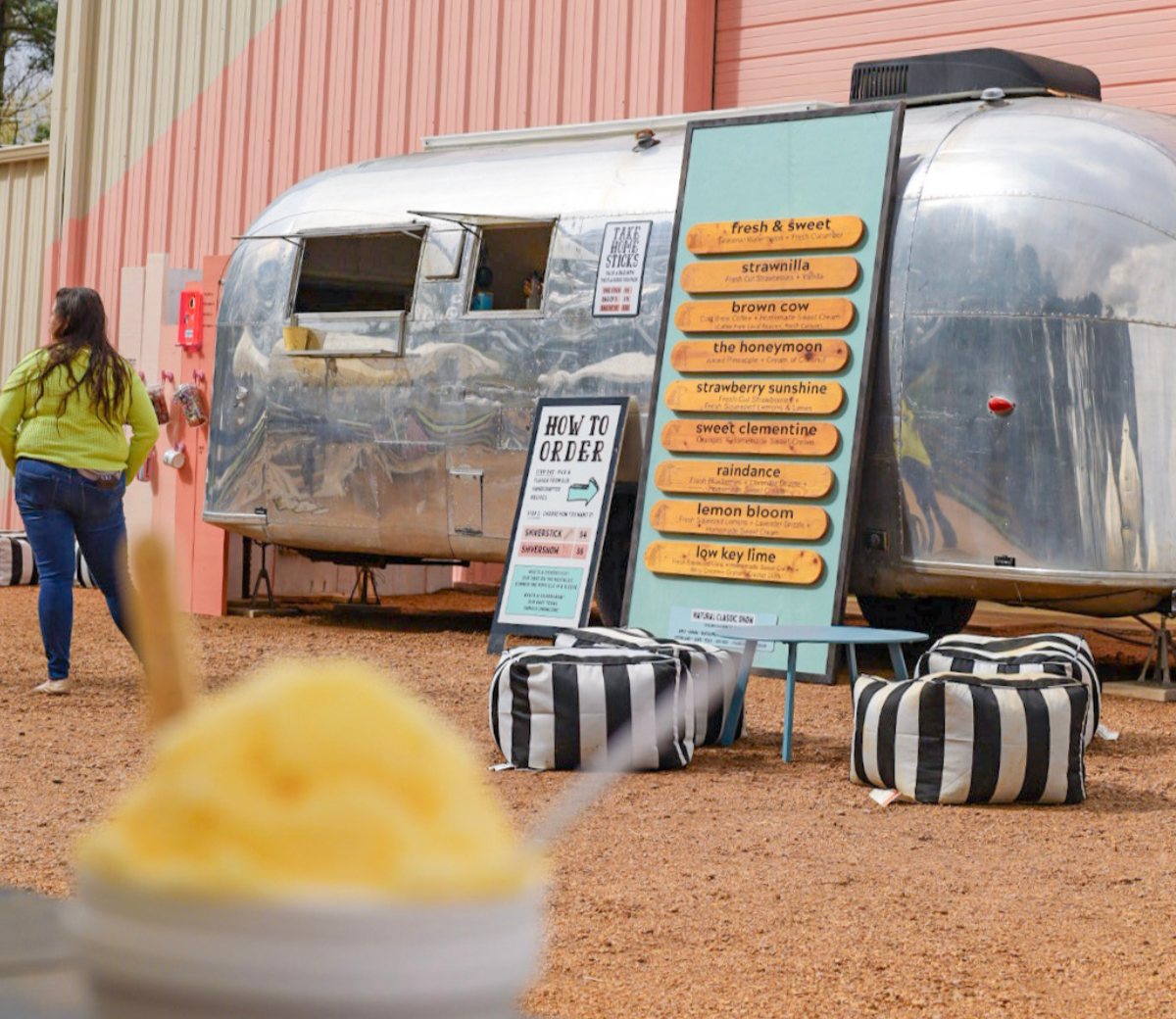 We had just gotten married when we opened our first little stand in Longview, Texas, in 2015 serving snow cones out of a vintage Airstream. From the very beginning, we made our syrups entirely from scratch, using real ingredients and bold flavors. The result was something different—fresh, vibrant, and unlike anything most people had tasted before. To our surprise (and gratitude), the community showed up in a big way. Lines wrapped around the block, and from day one, we felt incredibly supported.